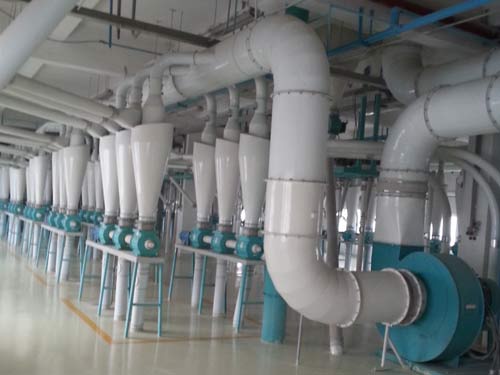 500噸面粉加工成套設(shè)備,該工藝以小麥為原料,日處理小麥500噸,是一條自動生產(chǎn)線,清理、去石、打麥、除塵、著水、凈糧二次清理、輸送等工段。